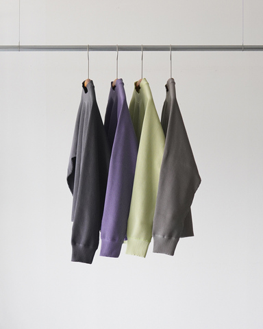 ふっくらとした表情を持つサーマル生地でありながら、着ていることを忘れるほどの軽さが魅力です。ネックは控えめに立ち上がるモックネック仕様。カジュアルすぎず、程よく品のある印象を演出します。