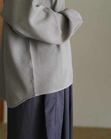身幅と袖にゆとりを持たせたパターン設計により、リラックス感のあるシルエットに。袖口の切り替えがさりげないアクセントとなり、ブラウジングすることで柔らかなフォルムを楽しめます。