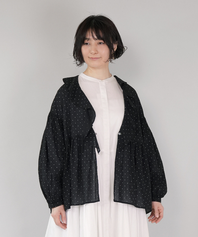YURK geniet van|ドットプリントの パッチワークブラウス
