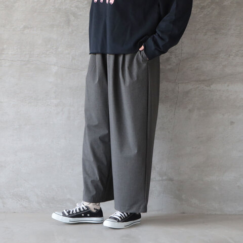 フロントに施されたタックが立体感のあるシルエットを生み、程よいワイドシルエットでリラックス感のある着こなしになります。