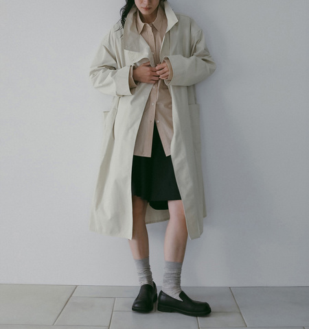 長過ぎないロング丈でスタイリングに取り入れやすく、抜け感のあるオーバーシルエットがこなれた印象を演出。裏地のない軽やかな仕上がりで、さらっと羽織れる使い勝手の良い一着です。幅広いスタイリングに自然と馴染みます。