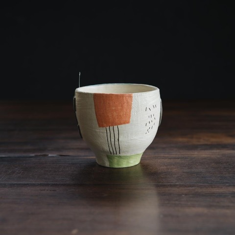 土の素材を感じるざらりとした質感。その上を自由に絵付けされているようで絶妙なバランスや配置、余白感で可愛さをギューっと詰め込みつつも洗練された作りになっています。