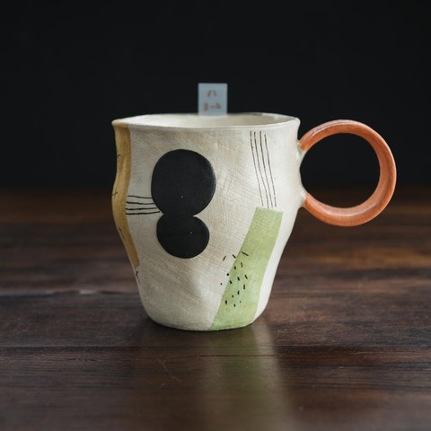 土の素材を感じるざらりとした質感。その上を自由に絵付けされているようで絶妙なバランスや配置、余白感で可愛さをギューっと詰め込みつつも洗練された作りになっています。