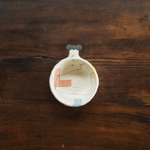 土の素材を感じるざらりとした質感。その上を自由に絵付けされているようで絶妙なバランスや配置、余白感で可愛さをギューっと詰め込みつつも洗練された作りになっています。
