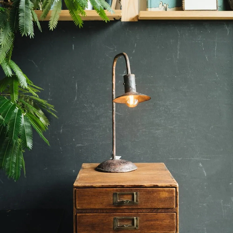 本当にふとしたタイミングで見つけて一瞬で引き込まれた盛林咲子さんが作るライトや燭台。ちょこんと帽子をかぶっているようなスタンドライトと、蝋燭を持ってくれているような燭台が届きましたよ〜!素材が生かされた絶妙な風合いがこれまた素敵でまずはどこで使っちゃおうかな〜と考える時間も楽しいです。 アンティークのような質感が特徴的な素敵な佇まいが写真で伝わるといいのですが、窓際で、デスクで、ベッドサイドでと色々なちょっとした場所にちょこんと置いて楽しんでいただけますよ〜!
