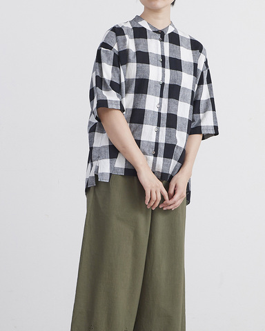 solamonat poche|ギンガムストライプ5分袖シャツカーディガン トップス ブラウス チェックシャツ ストライプシャツ【ご予約商品/5月上旬頃入荷予定】 poche-gs-shcd