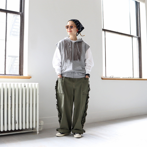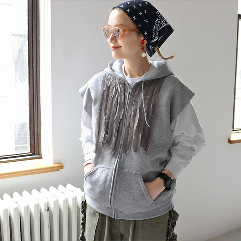 dahl'ia|キュプラフリルデコレーション・リメイクスウェットジップベスト (全2色)