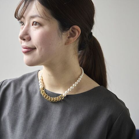 パールとチェーンのミックス使いで日常使いしやすい
