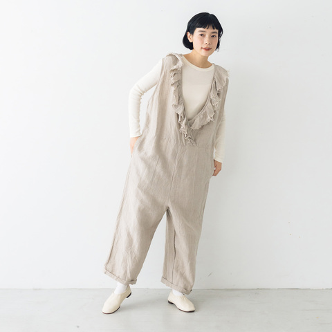 Titkos ティトコシュ ヨーロッパリネンのサロペット Vネックサロペットパンツ オールインワン