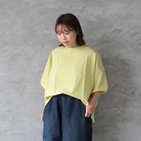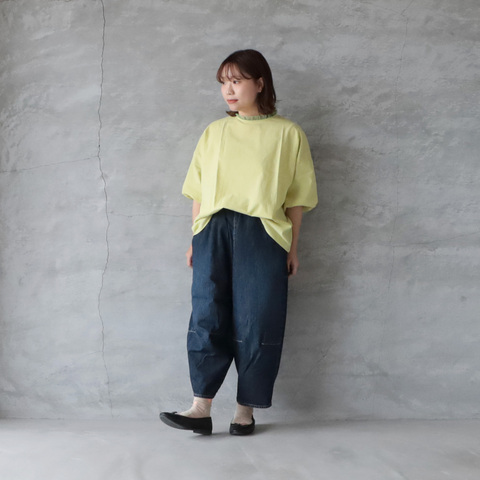 身幅をたっぷりと取ったゆったりシルエットで、身体のラインを拾わずリラックスした着用感。