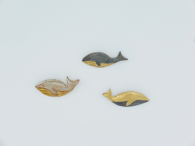陶製のブローチ「くじら-6」。