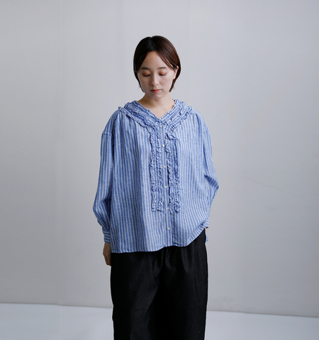 tumugu|ストライプ フリル ブラウス tb26101-b