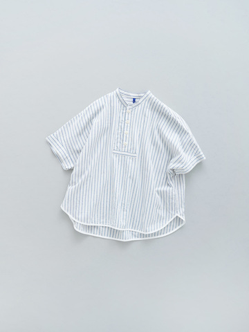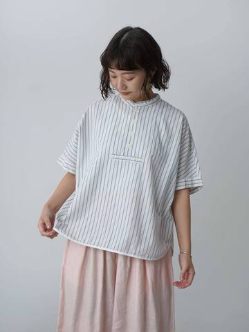 すっきりとしたノーカラーに、胸部分の切り替えやステッチ使いが特徴のシャツです。シャツらしい清潔感のなかにも洗いざらしのようなナチュラルな雰囲気があり、デイリーの着こなしに馴染みます。爽やかなストライプやチェック柄で、春夏にぴったりのアイテムです。