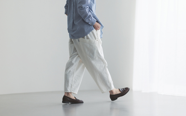 どんな体形、年齢の方が履いてもなぜかその人らしくなる、そんな不思議な魅力を持っているパンツです。