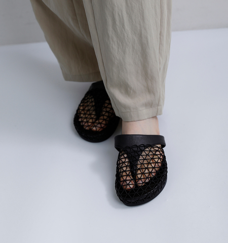 上品な抜け感を添える、シープレザーメッシュサンダル