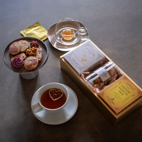 この春限定のクッキーアソートと、光浦醸造で人気のレモンハートを浮かべる月ヶ瀬レモンティー、やさしい甘みのはちみつキャンディーを溶かしながら味わうはちみつキャンディーレモンティーがセットになった特別なギフトセットです。