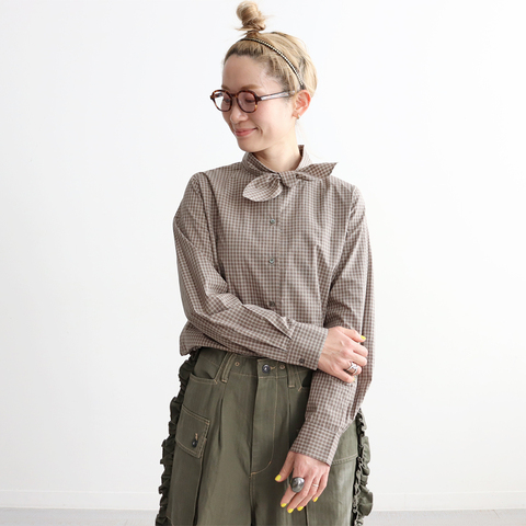 STAMP AND DIARY|100/1高密度ブロード ノーカラーフリルブラウス