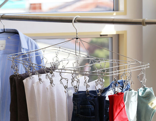 ピンチとピンチの間隔が広く、めいっぱい干しても洗濯物同士がくっつきすぎず、乾きが早くなるのはうれしいところです。