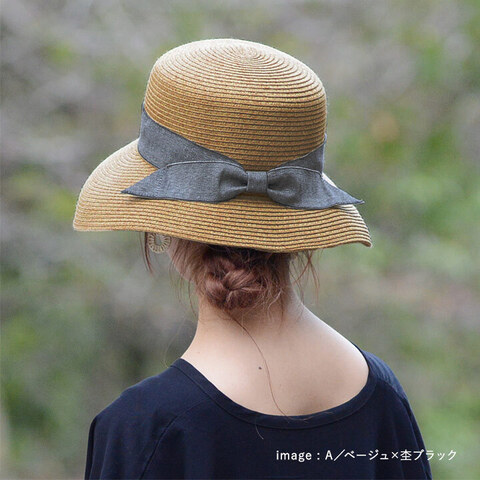毎年人気の夏映えハットに、今年は新デザインが登場して、選べる2タイプになりました。肌に溶け込むフレームや深めに被れるシルエットは従来のモデルと同じ。リボンの太さをお選びいただけます。