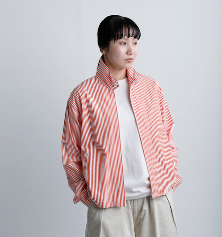 ゆったりとしたシルエットながら短めの着丈で、バランスよく仕上げたジャケット。なめらかで程よいハリのあるコットンポプリン素材で、シャツのように軽やかに羽織れる着心地が魅力です。サイドにはボタン付きのアジャスターを備え、ウエストのフィット感を調節していただけます。ユニセックスで着用可能な一枚で、季節の変わり目に重宝するアイテムです。