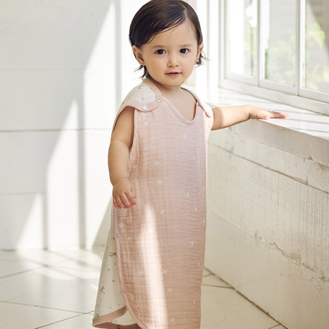 春夏のねんねに最適な3重ガーゼスリーパーに、付け替え可能な背中メッシュパーツが付きました。