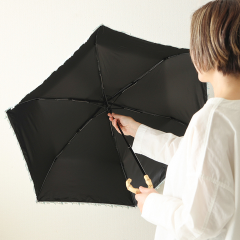 ・傘生地には防水撥水加工を施し、縫製には撥水糸を使用していますが、激しい雨や長時間のご使用では雨が染み込むことがございます。また飾り加工部分(刺繍、ステッチ、パイピング、テープ等)はデザインの特性上、完全な防水撥水加工が難しい場合があり雨が染みやすいのでご注意ください。
