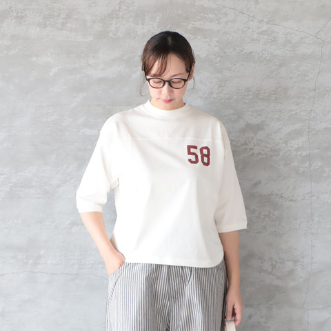 BLUE LAKE MARKET|アメリカンドライ天竺2 0.3cmピッチ七分袖ヨークボーダーTee プルオーバー Tシャツ カットソー