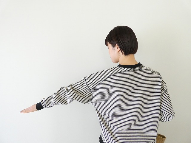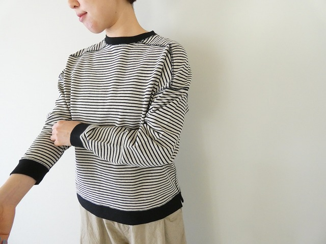 細かなボーダーがやさしい印象のロングスリーブプルオーバー。