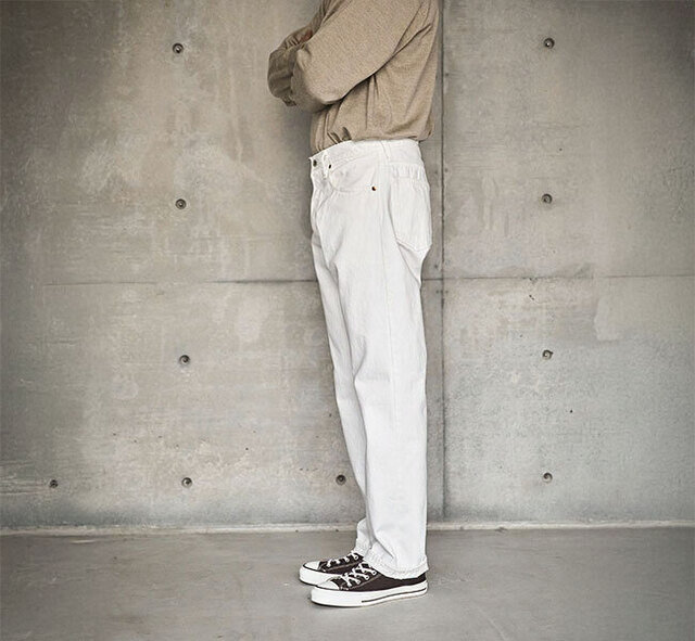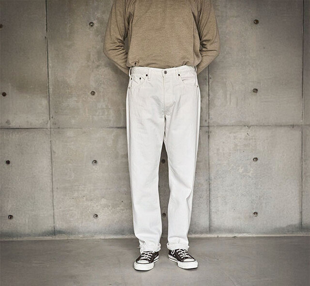 スタンダードなホワイトデニムの5ポケットジーンズ。