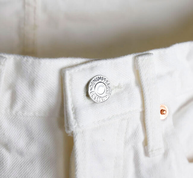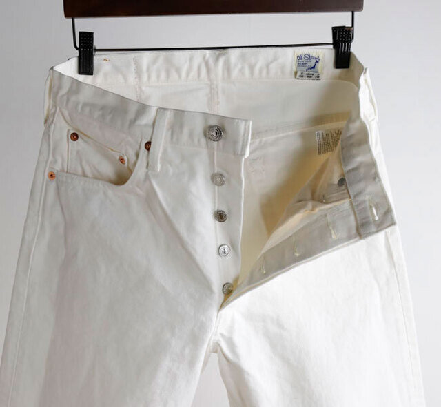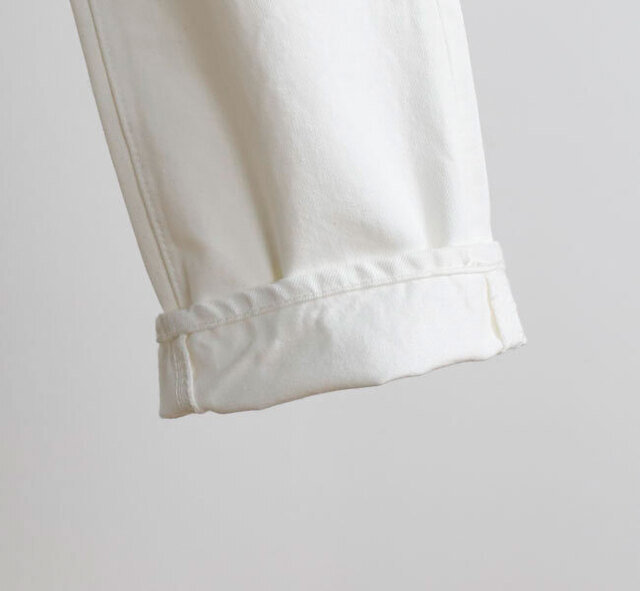 オリジナルのホワイトデニムは通常よりも糸の打ち込み本数を増やししっかりとした生地に仕上がってます。