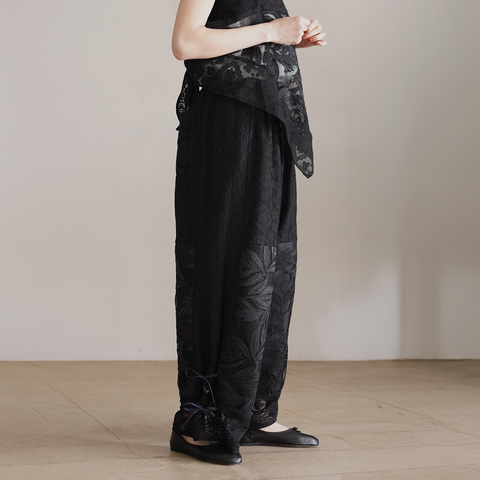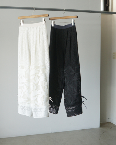 繊細でありながら存在感のあるレースが魅力のワイドパンツです。