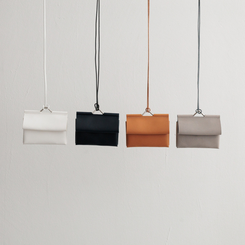 壁掛けカレンダーをモチーフにした、オリジナルの金具がポイントの革小物シリーズ。