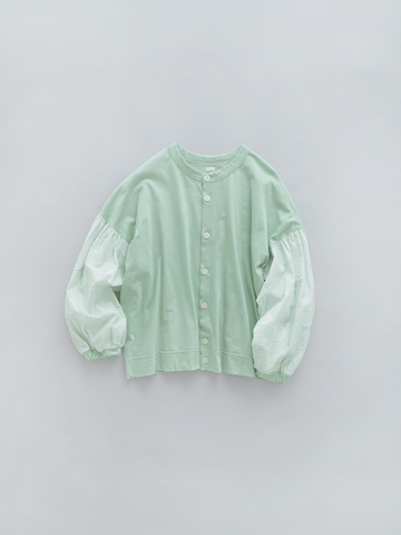ふんわりとしたボリュームのある袖のデザイン。袖口にはゴムが入っていて、さっとたくし上げやすい仕様になっています。生地が溜まるシルエットが可愛く、日常の作業のしやすさも嬉しいポイントです。