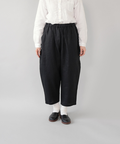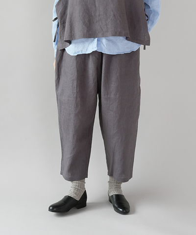 さらりとした清涼感のある、平織りリネン生地のパンツです。
