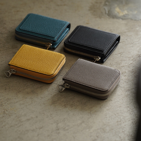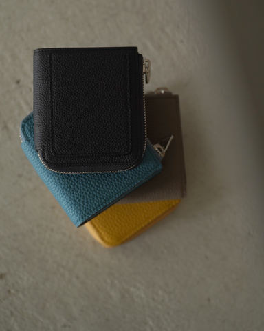 L字ファスナーを採用したミニマルな二つ折りデザインで、見た目以上の収納力を備えた実用的な一品です。無駄を削ぎ落とした洗練されたフォルムは、片手でしっかり持てる絶妙なサイズ感。