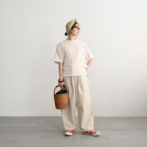 solamonat poche|リネンキャンバス ニットネックベスト poche-vv-tlc