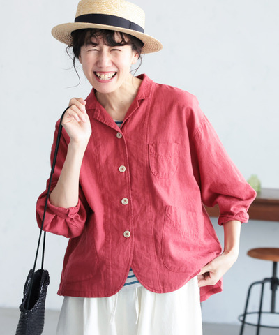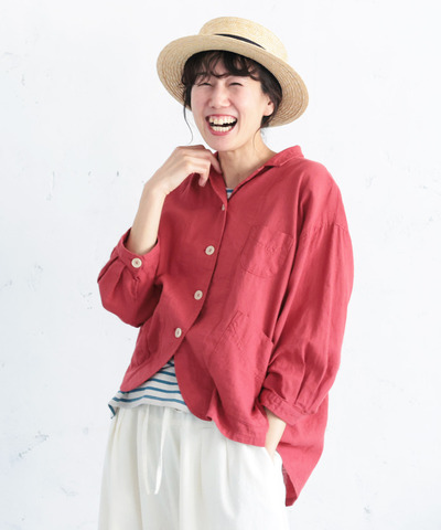 TUTIE.|-土へ還る-リネンベンガラ染めギャザーブラウス シャツ