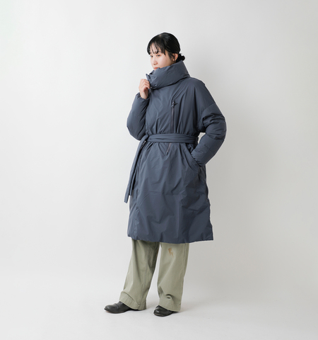 冷気をシャットアウトするため首元を温かく包み込むスタンドカラータイプ。ダウンには環境に配慮した高品質のリサイクルダウンを使用し、シェルには軽量、高い透湿防水性、ストレッチの高機能素材【FLIGHT】を採用。ウエストマークできるベルト付きでシルエットチェンジも可能な、デザイン性にも大変優れた軽量かつハイスペックなダウンコートです。