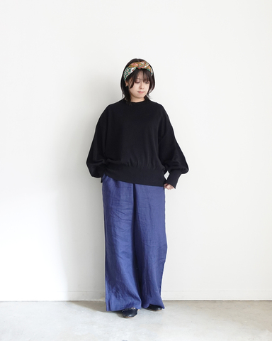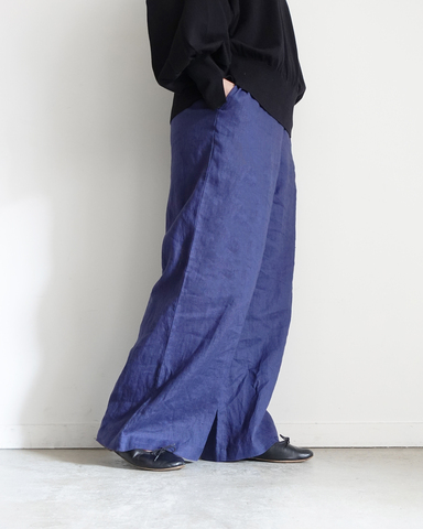 落ち着きのあるネイビーは、リネン特有の風合いと相まって重くなりすぎず、やわらかな印象に。