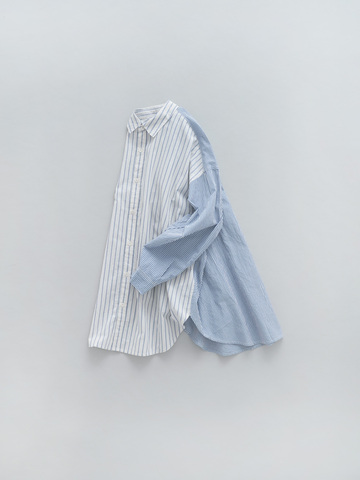 - CLシャンブレー&ストライプ パネルロングシャツ