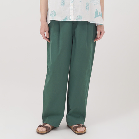 ハリ感のあるさらりとした綿素材を使用したタックパンツ。