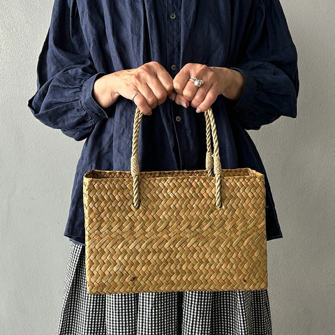 職人が1つ1つ丁寧に編んだ カチュー水草 角型 かごバッグ M kurashisha