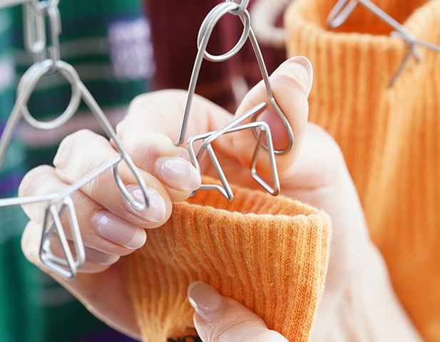 挟む力は弱くやさしくても、洗濯物は落ちにくく。少し風のある日も安心して干すことが出来ます。