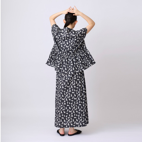 同柄のボトムと合わせたセットアップスタイルは、統一感がありながらも程よい存在感で、洗練された印象に仕上がります。