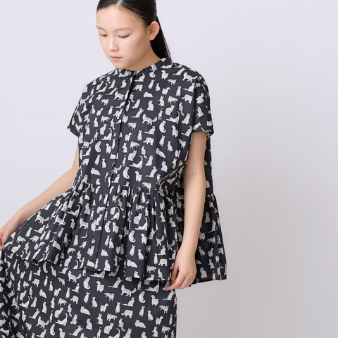 裾のギャザーがふんわりと広がり、ワイドシルエットのパンツとも好相性。リラックス感のある軽やかな着こなしが完成します。