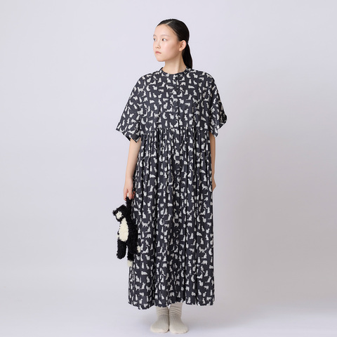 ウエスト切替からたっぷりとギャザーを施したスカート部分は、ふんわりと広がるやわらかなシルエットが魅力。