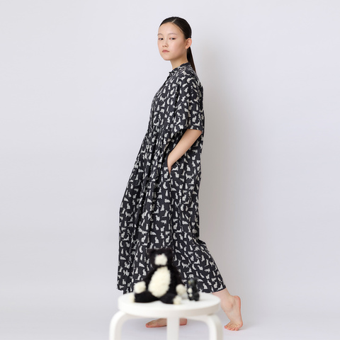様々な表情の猫たちが描かれた<Meow>は今季のおすすめの柄。モノトーンで取り入れやすく、大人っぽく楽しめます。