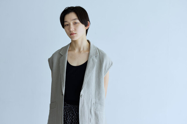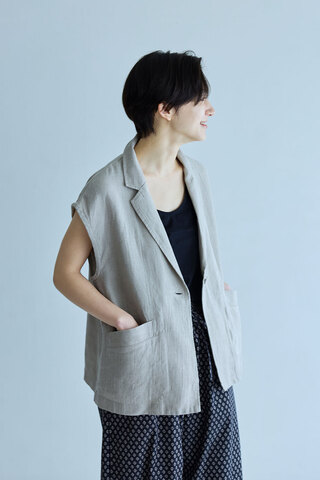 STAMP AND DIARY|フレンチリネン ドルマンショートベスト