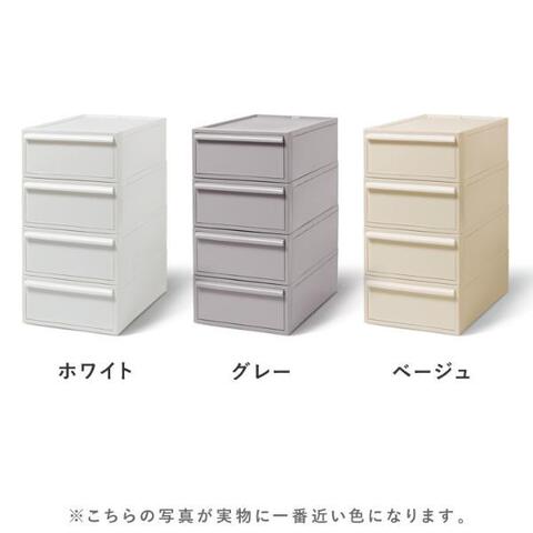 こちらは浅めの引き出しタイプで、インナーや靴下、ハンドタオルなどの小物収納にも便利なSサイズ。扱いやすいPP素材ながら、カラーはホワイト、ベージュ、グレーなどインテリアにも馴染む色合い。クローゼットの中だけでなく、お部屋に見せ置きもできるデザインです。