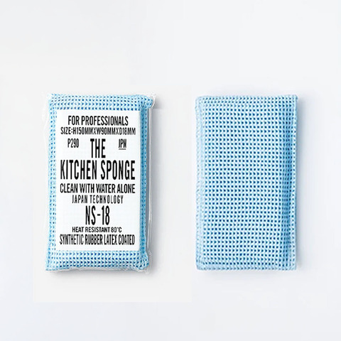 洗剤を使わず、水だけで油汚れまで落とす。その洗浄力は、もはやスポンジの常識を超える。 THE KITCHEN SPONGEは、食品工場や飲食店といった洗剤使用に制限のある現場で、実際にプロの手によって使われ続けてきた業務用スポンジ。その実力をそのままに、家庭用としてリデザインされた製品です。